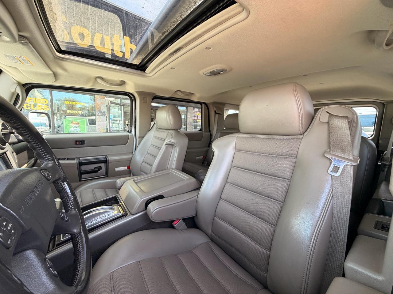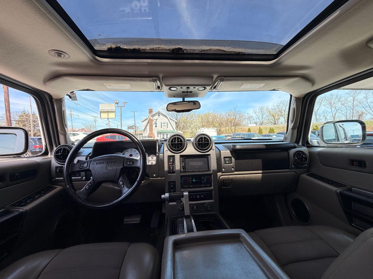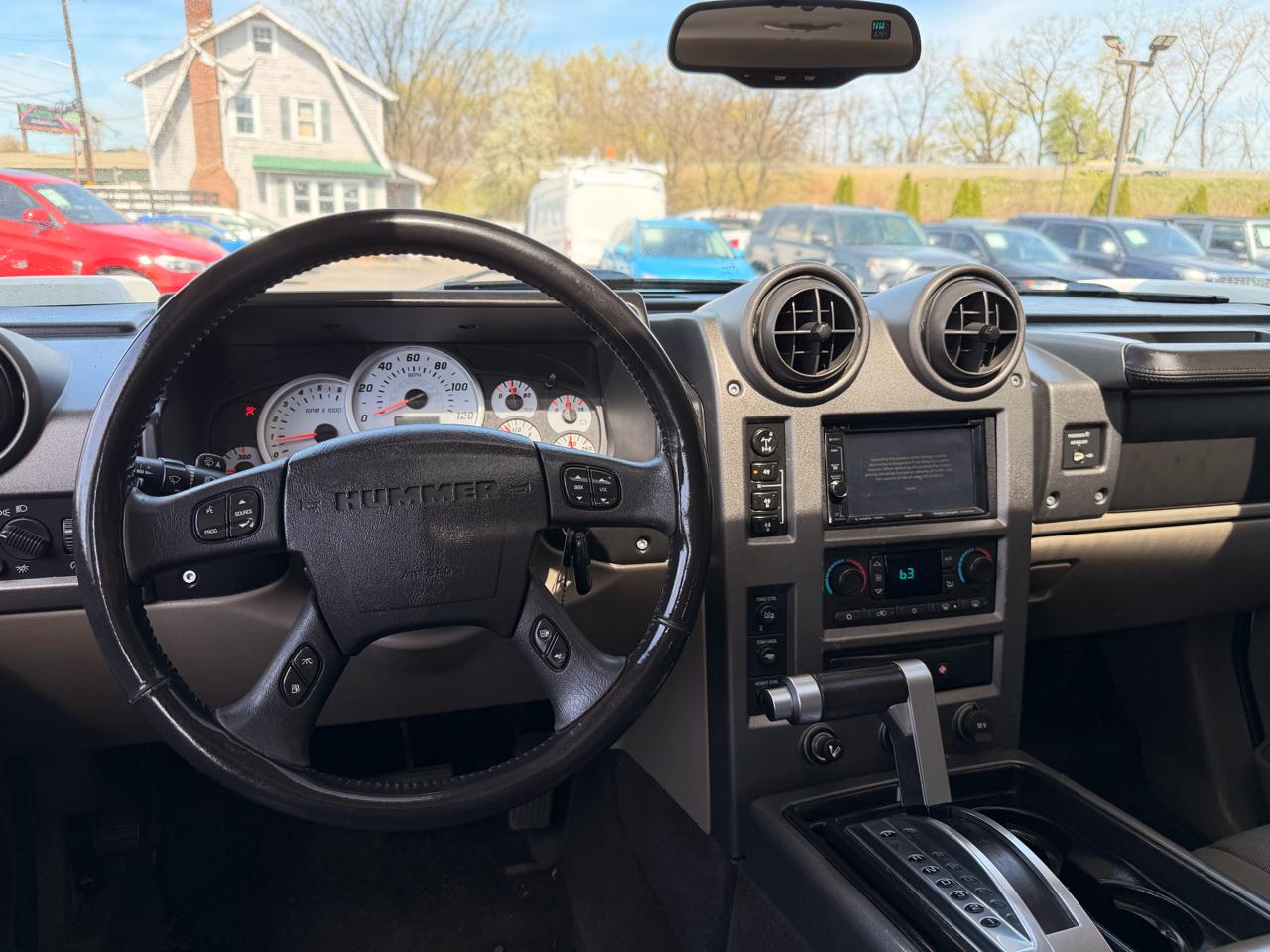 Equipped with features like heavy-duty trailering equipment, recovery hooks, and a 4-wheel disc hydraulic power brake system, this H2 is as versatile as it is tough. The interior boasts amenities like dual-zone automatic climate control, a leather-wrapped steering wheel, and a convenient HomeLink universal transmitter for added comfort and convenience. Stay connected and informed with the included OnStar 1-year Safe & Sound Service for peace of mind on your journeys.